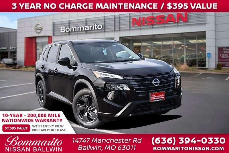 Super Black 2026 Nissan Rogue SV 4D Sport Utility AWD CVT with Xtronic 1.5L DOHC AWD, Chrome Rear Bumper Protector, Cold Weather Package, First Aid Kit, Heated Front Seats, Heated Steering Wheel. 28/35 City/Highway MPG Every New Nissan receives a 10 year/ 200,000 mile nationwide warranty and 3 years of NO CHARGE maintenance included! Visit Missouri's #1 Automotive Group for a better price and better service.