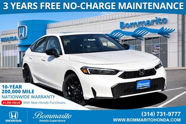 Hybrid gas/electric motor, heated front bucket seats, backup camera, sunroof, proximity key for doors and push button start, 4DR hatchback, 2.0L I-4 16-Valve DOHC Dual-VTC/Atkinson, direct fuel injection and remote engine start, CVT automatic, FWD, rear bench seat, 8 speakers, 2 LCD monitors in the front, Bluetooth®, adaptive cruise control with low-speed follow, steering wheel audio and cruise controls, dual zone front automatic air conditioning, blind spot information (BSI) system blind spot, liftgate rear cargo access, collision mitigation braking system (CMBS) + forward collision warning (FCW), dual stage driver and passenger front airbags, curtain 1st/2nd row airbags and low tire pressure warning. This BRAND NEW 2026 Honda Civic has a great cockpit layout, with all the controls easy to find and right where you need them. Thanks for looking and we hope to hear from you.
