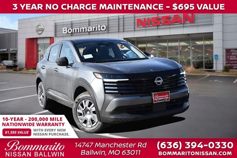 Gun Met 2026 Nissan Kicks S 4D Sport Utility FWD CVT with Xtronic 2.0L DOHC Carpeted Floor Mats & Cargo Mat, Splash Guards. 28/35 City/Highway MPG Every New Nissan receives a 10 year/ 200,000 mile nationwide warranty and 3 years of NO CHARGE maintenance included! Visit Missouri's #1 Automotive Group for a better price and better service.