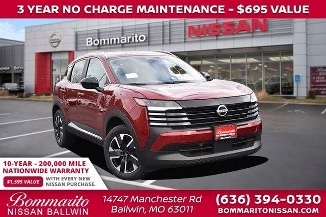 Scarlet 2026 Nissan Kicks SV 4D Sport Utility AWD CVT with Xtronic 2.0L DOHC Cold Weather Package, Heated Front Seats, Heated Mirrors, Panoramic Moonroof, Rear Floor Heater Ducts, Sunglass Holder, SV Premium Package. 27/34 City/Highway MPG Every New Nissan receives a 10 year/ 200,000 mile nationwide warranty and 3 years of NO CHARGE maintenance included! Visit Missouri's #1 Automotive Group for a better price and better service.