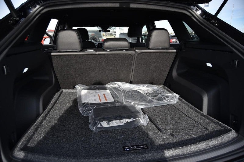 Deep Black Pearl 2026 Volkswagen Atlas Cross Sport 2.0T SE FWD 8-Speed Automatic with Tiptronic 2.0L TSI 4-Wheel Disc Brakes, 4-Wheel Independent Suspension, 6 Speakers, ABS brakes, Air Conditioning, Alloy wheels, AM/FM radio: SiriusXM with 360L, Auto High-beam Headlights, Auto-dimming Rear-View mirror, Automatic temperature control, Brake assist, Bumpers: body-color, Delay-off headlights, Driver door bin, Driver vanity mirror, Dual front impact airbags, Dual front side impact airbags, Electronic Stability Control, Emergency communication system: VW Car-Net Safe & Secure 5-year, Extended Range Remote Engine Start, Exterior Parking Camera Rear, Four wheel independent suspension, Front anti-roll bar, Front Bucket Seats, Front Center Armrest, Front dual zone A/C, Front fog lights, Front reading lights, Fully automatic headlights, Heated door mirrors, Heated front seats, Heated steering wheel, Illuminated entry, Low tire pressure warning, Occupant sensing airbag, Outside temperature display, Overhead airbag, Overhead console, Panic alarm, Passenger door bin, Passenger vanity mirror, Perforated V-Tex Leatherette Seating Surfaces, Power door mirrors, Power driver seat, Power steering, Power windows, Radio data system, Rain sensing wipers, Rear anti-roll bar, Rear reading lights, Rear seat center armrest, Rear window defroster, Rear window wiper, Remote keyless entry, Security system, Speed control, Speed-sensing steering, Split folding rear seat, Spoiler, Steering wheel mounted audio controls, Tachometer, Telescoping steering wheel, Tilt steering wheel, Traction control, Trip computer, Turn signal indicator mirrors, Variably intermittent wipers, Ventilated front seats, VW Care, Wheels: 18" 5-Spoke 2-Tone Machined Alloy.