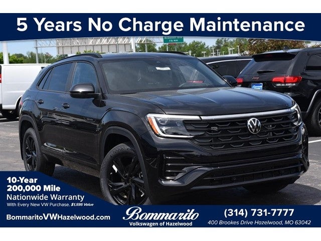 Deep Black Pearl 2026 Volkswagen Atlas Cross Sport 2.0T SEL R-Line Black AWD 8-Speed Automatic with Tiptronic 2.0L TSI 4-Wheel Disc Brakes, 4-Wheel Independent Suspension, 6 Speakers, ABS brakes, Air Conditioning, Alloy wheels, AM/FM radio: SiriusXM with 360L, Auto High-beam Headlights, Auto-dimming Rear-View mirror, Automatic temperature control, Brake assist, Bumpers: body-color, Compass, Delay-off headlights, Driver door bin, Driver vanity mirror, Dual front impact airbags, Dual front side impact airbags, Electronic Stability Control, Emergency communication system: VW Car-Net Safe & Secure 5-year, Exterior Parking Camera Rear, Four wheel independent suspension, Front anti-roll bar, Front Bucket Seats, Front Center Armrest, Front dual zone A/C, Front fog lights, Front reading lights, Front-Door Mounted Volkswagen Logo Puddle Lights (set of 2), Fully automatic headlights, Garage door transmitter: HomeLink, Heads-Up Display, Heated and Actively Ventilated Front Bucket Seats, Heated door mirrors, Heated front seats, Heated rear seats, Heated steering wheel, Heavy Duty Trunk Liner with VW CarGo Blocks, Illuminated entry, Low tire pressure warning, Memory seat, Navigation System, Occupant sensing airbag, Outside temperature display, Overhead airbag, Overhead console, Panic alarm, Passenger door bin, Passenger vanity mirror, Perforated Vienna Leather Seating Surfaces, Power door mirrors, Power driver seat, Power Liftgate, Power moonroof: Panoramic, Power passenger seat, Power steering, Power windows, Radio data system, Radio: MIB3 Discover Pro with Navigation, Rain sensing wipers, Rear anti-roll bar, Rear reading lights, Rear seat center armrest, Rear window defroster, Rear window wiper, Remote keyless entry, Rubber Monster Mats Kit (set of 4), Security system, Speed control, Speed-sensing steering, Split folding rear seat, Spoiler, Steering wheel mounted audio controls, Tachometer, Telescoping steering wheel, Tilt steering wheel, Traction control, T Price includes: Disclaimer - Includes all incentives some in lieu of special APR. Don't forget you get 5 years Maintenance included at no charge. Tax, title, license extra. See dealer for details. Not all incentives and APR offers are combinable. See Bommarito VW Hazelwood for details. Come see our unique showroom for a hassle-free experience purchasing your new Volkswagen.$2500 - Customer Bonus. Exp. 04/30/2026 Sale Price does not include $620 dealer fee.