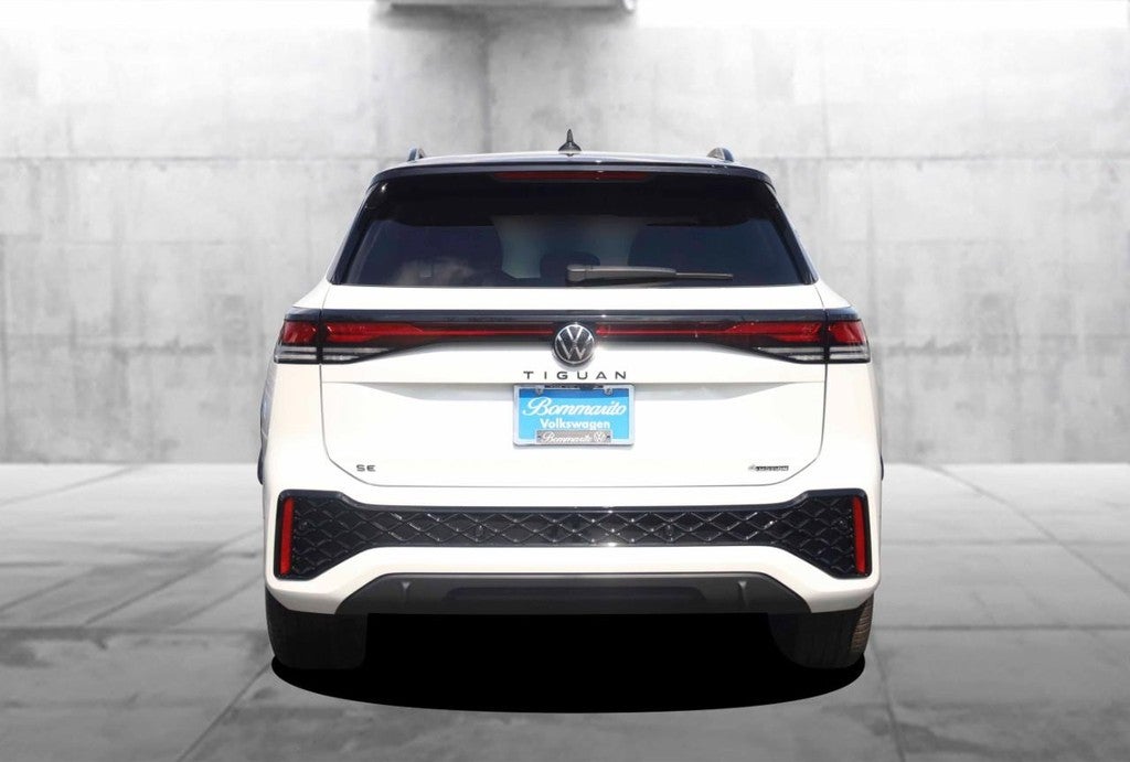 Pure White 2026 Volkswagen Tiguan 2.0T SE R-Line Black AWD 8-Speed Automatic 2.0L TSI DOHC AWD, 4-Wheel Disc Brakes, 4-Wheel Independent Suspension, 7 Speakers, ABS brakes, Air Conditioning, Alloy wheels, AM/FM radio: SiriusXM with 360L, Auto High-beam Headlights, Auto-dimming Rear-View mirror, Auto-Dimming Rearview Mirror with HomeLink, Automatic temperature control, Brake assist, Bumpers: body-color, Compass, Delay-off headlights, Driver door bin, Driver vanity mirror, Dual front impact airbags, Dual front side impact airbags, Electronic Stability Control, Emergency communication system, Exterior Parking Camera Rear, Four wheel independent suspension, Front anti-roll bar, Front Bucket Seats, Front Center Armrest, Front dual zone A/C, Front reading lights, Fully automatic headlights, Heads-Up Display, Heated door mirrors, Heated Front Seats, Heated front seats, Heavy Duty Trunk Liner with VW CarGo Blocks, Illuminated entry, Knee airbag, Leather Shift Knob, Leather steering wheel, Low tire pressure warning, Occupant sensing airbag, Outside temperature display, Overhead airbag, Overhead console, Panic alarm, Passenger door bin, Passenger vanity mirror, Perforated V-Tex Leatherette Seating Surfaces, Power door mirrors, Power driver seat, Power Liftgate, Power moonroof: Panoramic, Power steering, Power windows, Radio data system, Radio: MIB4 Composition Media Touchscreen with AM/FM, Rain sensing wipers, Rear anti-roll bar, Rear reading lights, Rear seat center armrest, Rear side impact airbag, Rear window defroster, Rear window wiper, Remote keyless entry, Rubber Monster Mats Kit (set of 4), Security system, Speed control, Speed-sensing steering, Split folding rear seat, Spoiler, Sport steering wheel, Steering wheel mounted audio controls, Tachometer, Telescoping steering wheel, Tilt steering wheel, Traction control, Trip computer, Turn signal indicator mirrors, Variably intermittent wipers, VW Care, Wheels: 20" Black Painted Alloy, AWD. Price includes: Disclaimer - Includes all incentives some in lieu of special APR. Don't forget you get 5 years Maintenance included at no charge. Tax, title, license extra. See dealer for details. Not all incentives and APR offers are combinable. See Bommarito VW Hazelwood for details. Come see our unique showroom for a hassle-free experience purchasing your new Volkswagen.$1000 - Customer Bonus. Exp. 04/30/2026 Sale Price does not include $585 dealer fee.