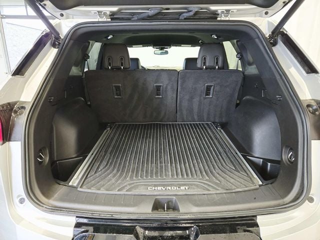 This Blazer is well Equipped with Interior Protection Package (LPO) (Premium All-Weather Cargo Mat (LPO) and Premium All-Weather Floor Mats), Preferred Equipment Group 1RS, Blazer RS, 4D Sport Utility, 3.6L V6 SIDI DOHC VVT, 9-Speed Automatic, FWD, Silver Ice Metallic, Jet Black Leather, 3.49 Final Drive Ratio, 4-Wheel Disc Brakes, 6 Speakers, 6-Speaker Audio System Feature, 6-Way Power Front Passenger Seat Adjuster, ABS brakes, Air Conditioning, Alloy wheels, AM/FM radio: SiriusXM, Apple CarPlay/Android Auto, Auto-dimming door mirrors, Auto-dimming Rear-View mirror, Automatic temperature control, Brake assist, Bumpers: body-color, Child-Seat-Sensing Airbag, Compass, Delay-off headlights, Driver door bin, Driver vanity mirror, Dual front impact airbags, Dual front side impact airbags, Electronic Stability Control, Emergency communication system: OnStar and Chevrolet connected services capable, Four wheel independent suspension, Front anti-roll bar, Front Bucket Seats, Front Center Armrest, Front dual zone A/C, Front reading lights, Fully automatic headlights, Garage door transmitter, Heated door mirrors, Heated Driver & Front Passenger Seats, Heated front seats, Heated steering wheel, High-Intensity Discharge Headlights, Illuminated entry, Knee airbag, Leather Shift Knob, Low tire pressure warning, Navigation System, Occupant sensing airbag, Outside temperature display, Overhead airbag, Overhead console, Panic alarm, Passenger door bin, Passenger vanity mirror, Perforated Leather-Appointed Seat Trim, Power door mirrors, Power driver seat, Power Liftgate, Power passenger seat, Power steering, Power windows, Radio data system, Radio: Chevrolet Infotainment 3 Plus System, Rear anti-roll bar, Rear reading lights, Rear seat center armrest, Rear window defroster, Rear window wiper, Remote keyless entry, Ride & Handling Suspension, Roof rack: rails only, Security system, Speed control, Speed-sensing steering, Split folding rear seat, Spoiler, Steering wheel mounted audio controls, Tachometer, Telescoping steering wheel, Tilt steering wheel, Traction control, Trip computer, Turn signal indicator mirrors, Variably intermittent wipers, Voltmeter, and Wheels: 20 Dark Android Machined-Face Aluminum.