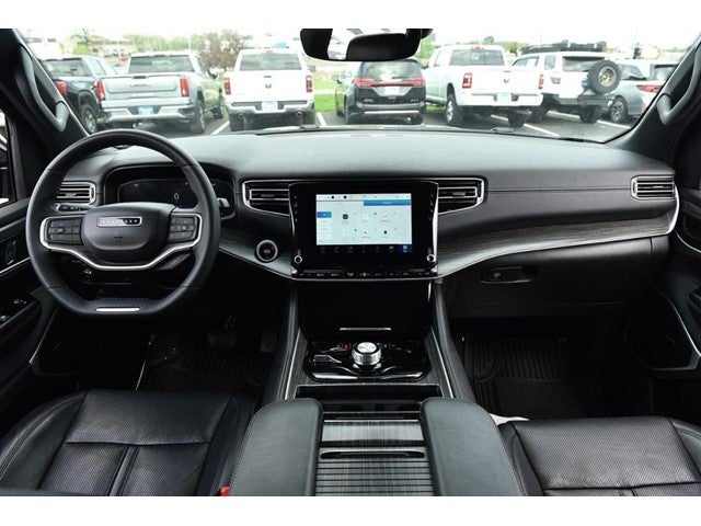 CARFAX One-Owner. Clean CARFAX. Diamond Black Crystal Pearlcoat 2024 Jeep Wagoneer Series II 4WD 8-Speed Automatic 3.0L I6 Motortrend Certified Vehicle, One Owner Accident Free CARFAX, Heated Steering Wheel, AWD/ 4x4, Navigation System, Apple Carplay/ Android Auto, Remote Start, 10 Speakers, 118 MPH Maximum Speed Calibration, 3.55 Rear Axle Ratio, 3rd row seats: bench, 4-Wheel Disc Brakes, 8-Passenger Seating, ABS brakes, Adjustable pedals, Air Conditioning, Alloy wheels, AM/FM radio: SiriusXM with 360L, Anti-whiplash front head restraints, Apple CarPlay/Android Auto, Audio memory, Auto-dimming door mirrors, Auto-dimming Rear-View mirror, Auto-leveling suspension, Automatic temperature control, Brake assist, Bumpers: body-color, Compass, Delay-off headlights, Driver door bin, Driver vanity mirror, Driver's Seat Mounted Armrest, Dual front impact airbags, Dual front side impact airbags, Electronic Stability Control, Emergency communication system: Wagoneer Connect, Exterior Parking Camera Rear, Four wheel independent suspension, Front anti-roll bar, Front Bucket Seats, Front Center Armrest w/Storage, Front dual zone A/C, Front fog lights, Front reading lights, Fully automatic headlights, Garage door transmitter, Genuine wood console insert, Genuine wood dashboard insert, Genuine wood door panel insert, Heated door mirrors, Heated front seats, Heated rear seats, Heated steering wheel, Illuminated entry, Knee airbag, Leather Trimmed Bucket Seats, Low tire pressure warning, Memory seat, Navigation System, Normal Duty Suspension, Occupant sensing airbag, Outside temperature display, Overhead airbag, Overhead console, Panic alarm, Passenger door bin, Passenger seat mounted armrest, Passenger vanity mirror, Pedal memory, Power adjustable front head restraints, Power door mirrors, Power driver seat, Power Liftgate, Power passenger seat, Power steering, Power windows, Quick Order Package 25J, Radio data system, Radio: Uconnect 5 Nav w/10.1" Display, Rain sensing wipers, Rear air conditioning, Rear anti-roll bar, Rear dual zone A/C, Rear reading lights, Rear seat center armrest, Rear window defroster, Rear window wiper, Reclining 3rd row seat, Remote keyless entry, Security system, Speed control, Speed-sensing steering, Speed-Sensitive Wipers, Split folding rear seat, Steering wheel memory, Steering wheel mounted audio controls, Tachometer, Telescoping steering wheel, Tilt steering wheel, Traction control, Trip computer, Turn signal indicator mirrors, Variably intermittent wipers, Ventilated front seats, Voltmeter, Wheels: 20" x 9.0" Premium 2 Aluminum.