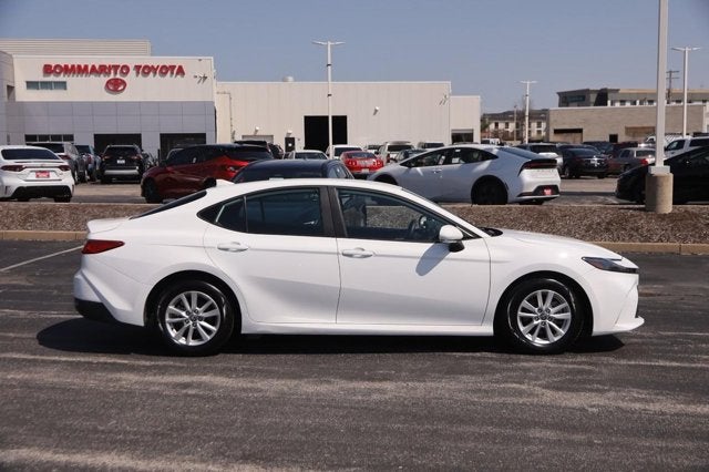 CARFAX One-Owner. Clean CARFAX. Must finance with Bommarito Toyota to qualify for sale price. Add $1,000 if cash or outside lender. See dealer for details. 2025 Toyota Camry LE Ice FWD eCVT 2.5L 4-Cylinder 16V DOHC 2.5L 4-Cylinder 16V DOHC, Black Cloth, 4-Wheel Disc Brakes, 6 Speakers, ABS brakes, Air Conditioning, Alloy wheels, AM/FM radio: SiriusXM, Apple CarPlay/Android Auto, Auto High-beam Headlights, Automatic temperature control, Brake assist, Bumpers: body-color, Delay-off headlights, Driver door bin, Driver vanity mirror, Dual front impact airbags, Dual front side impact airbags, Electronic Stability Control, Emergency communication system: Safety Connect (up to 10-year trial subscription), Exterior Parking Camera Rear, Fabric Seat Trim, Four wheel independent suspension, Front anti-roll bar, Front Bucket Seats, Front Center Armrest, Front dual zone A/C, Front reading lights, Fully automatic headlights, Heated door mirrors, Illuminated entry, Knee airbag, Low tire pressure warning, Occupant sensing airbag, Outside temperature display, Overhead airbag, Overhead console, Panic alarm, Passenger door bin, Passenger vanity mirror, Power door mirrors, Power steering, Power windows, Radio data system, Radio: Toyota Audio Multimedia w/8" Touchscreen, Rear anti-roll bar, Rear seat center armrest, Rear side impact airbag, Rear window defroster, Remote keyless entry, Security system, Speed control, Speed-sensing steering, Split folding rear seat, Steering wheel mounted audio controls, Telescoping steering wheel, Tilt steering wheel, Traction control, Trip computer, Turn signal indicator mirrors, Variably intermittent wipers, Wheels: 16" Silver-Finished Alloy, 2.5L 4-Cylinder 16V DOHC, Black Cloth.