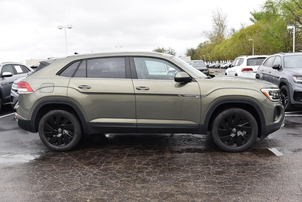 CARFAX One-Owner. Clean CARFAX. Certified. Avocado Green Pearl 2025 Volkswagen Atlas Cross Sport 2.0T SE w/Technology FWD 8-Speed Automatic with Tiptronic 2.0L TSI VW Pre-Owned Certified Vehicle, One Owner Accident Free CARFAX, Leather, Alloy Wheels, Heated Seats, Bluetooth®, Bluetooth® Streaming Audio, USBc Port, Volkswagen Certified Pre-Owned Certified, 4-Wheel Disc Brakes, 4-Wheel Independent Suspension, 6 Speakers, ABS brakes, Air Conditioning, Alloy wheels, AM/FM radio: SiriusXM with 360L, Auto High-beam Headlights, Auto-dimming Rear-View mirror, Automatic temperature control, Brake assist, Bumpers: body-color, Compass, Delay-off headlights, Driver door bin, Driver vanity mirror, Dual front impact airbags, Dual front side impact airbags, Electronic Stability Control, Emergency communication system: VW Car-Net Safe & Secure 5-year, Exterior Parking Camera Rear, Four wheel independent suspension, Front anti-roll bar, Front Bucket Seats, Front Center Armrest, Front dual zone A/C, Front fog lights, Front reading lights, Fully automatic headlights, Heated & Actively Ventilated Front Seats, Heated door mirrors, Heated front seats, Heated steering wheel, Illuminated entry, Low tire pressure warning, Occupant sensing airbag, Outside temperature display, Overhead airbag, Overhead console, Panic alarm, Passenger door bin, Passenger vanity mirror, Perforated V-Tex Leatherette Seating Surfaces, Power door mirrors, Power driver seat, Power Liftgate, Power steering, Power windows, Radio data system, Radio: MIB3 Composition Media AM/FM/HD, Rain sensing wipers, Rear anti-roll bar, Rear reading lights, Rear seat center armrest, Rear window defroster, Rear window wiper, Remote keyless entry, Security system, Speed control, Speed-sensing steering, Split folding rear seat, Spoiler, Steering wheel mounted audio controls, Tachometer, Telescoping steering wheel, Tilt steering wheel, Traction control, Trip computer, Turn signal indicator mirrors, Variably intermittent wipers, Ventilated front seats, Wheels: 20" 5-Spoke 2-Tone Machined Alloy. Recent Arrival!